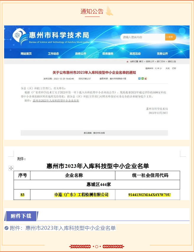 喜報|中嘉檢測入選惠州市2023年科技型中小企業名單